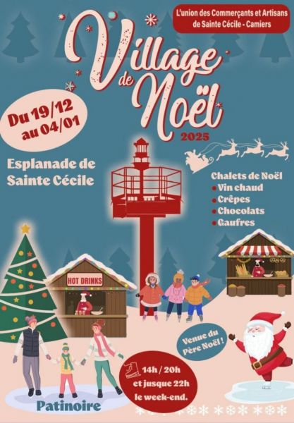 Du 19 décembre au 4 janvier, l’Union des commerçants et artisans de Sainte-Cécile – Camiers transforme l’Esplanade en Village de Noël.